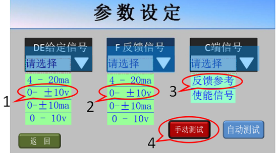 7、手動測試基本正常后,點擊屏幕左下方的返回鍵,返回參數(shù)設定畫面;